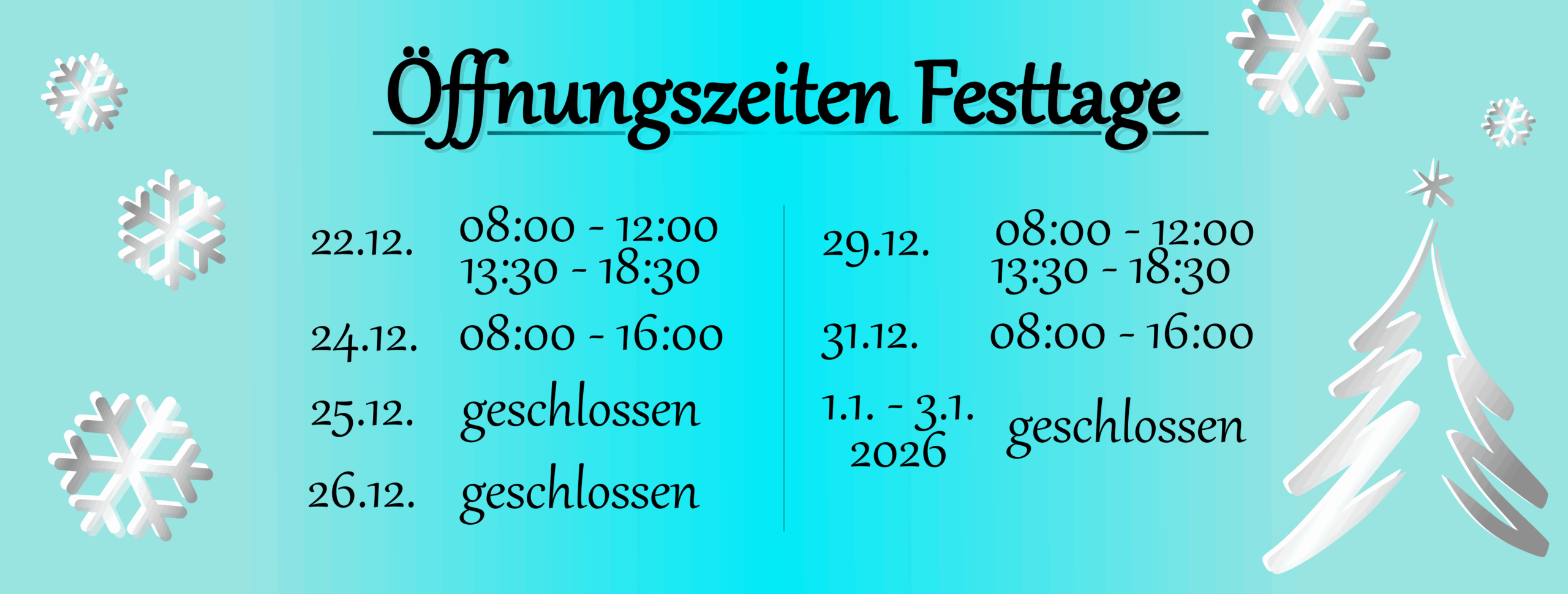 Dienstag – Freitag: 08:00 – 12:00 Uhr ¦ 13:30 – 18:30 Uhr